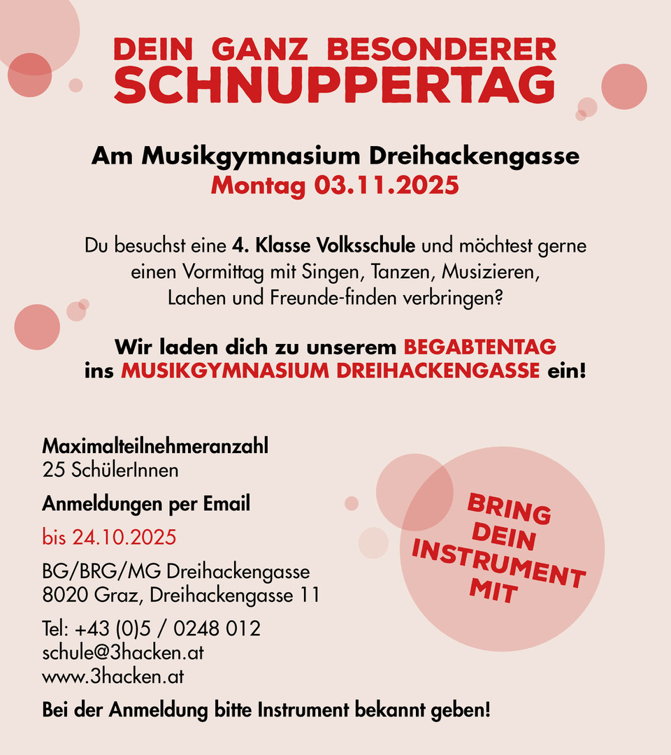 Das Musikgymnasium Dreihackengasse veranstaltet eine Vielzahl von unterschiedlichen Events rund