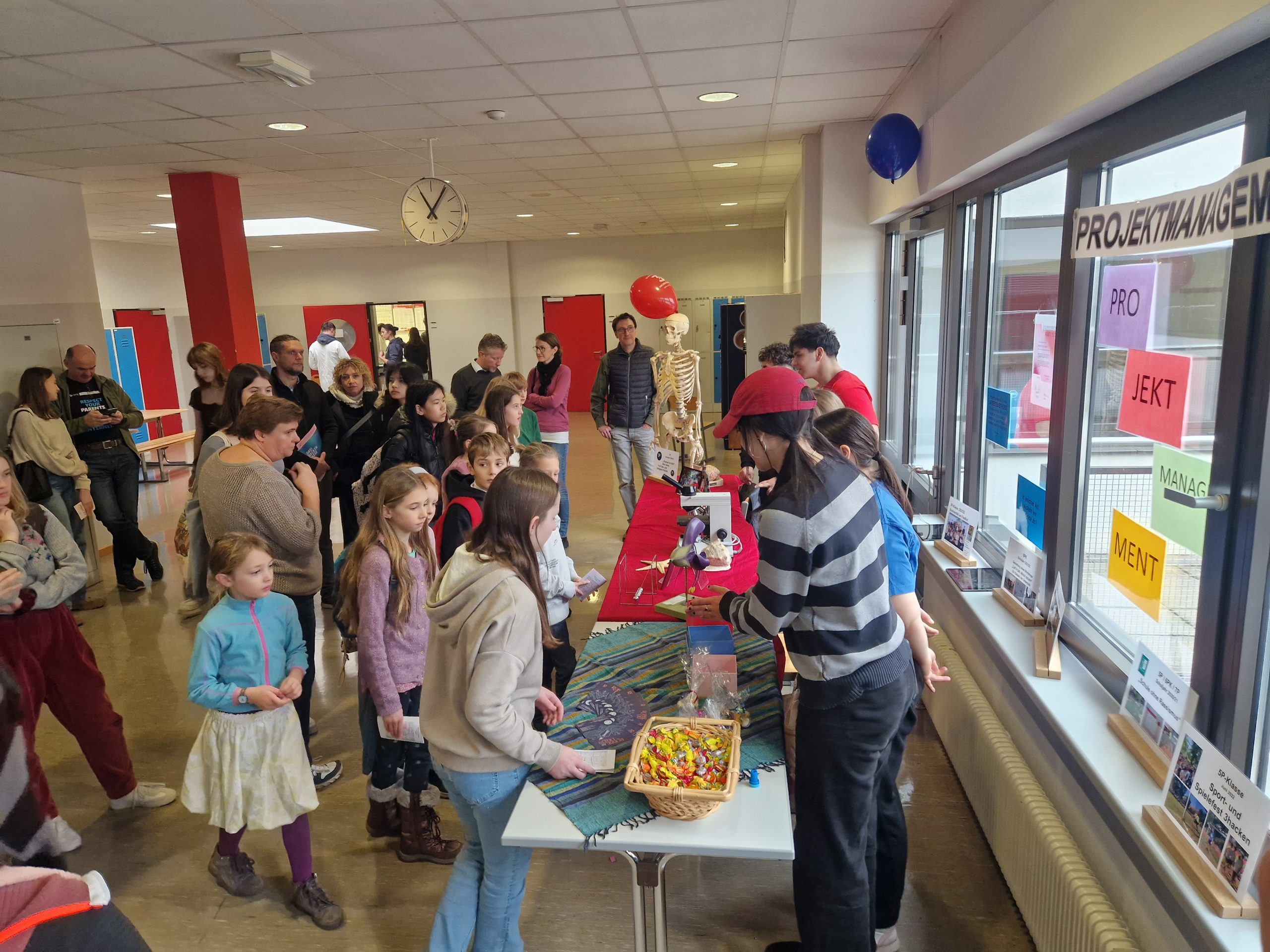 Wir durften einen stimmungsvollen und gut besuchten Tag der offenen Tür erleben. Die verschiedenen Stationen quer durch unser Schulgebäude erfreuten sich regen Andrangs während die Musikschüler:innen für musikalische Untermalung sorgten.